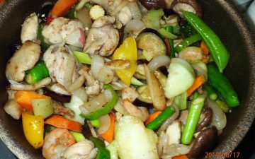 ストーブ鍋、弱火で10分、手羽元の照り焼き