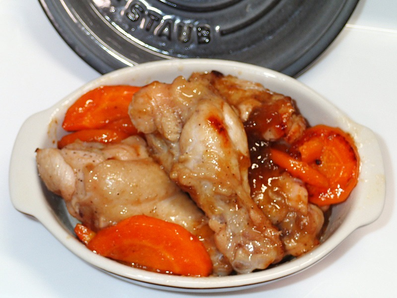ストーブ鍋、弱火で10分、手羽元の照り焼き